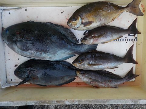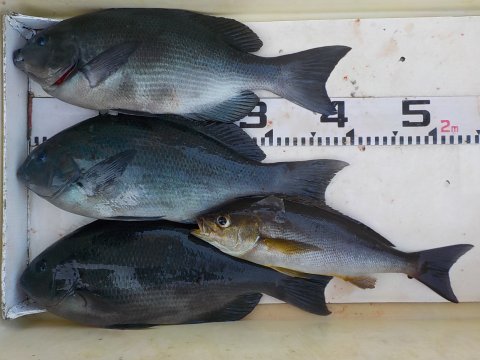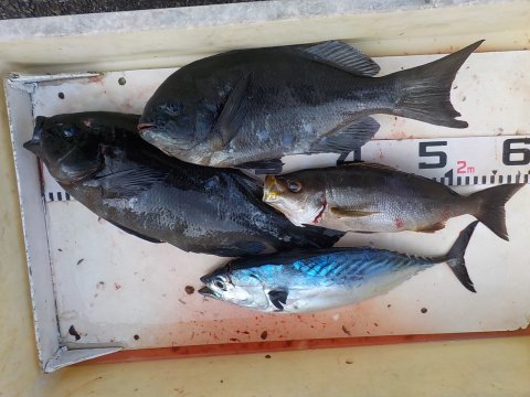 | グレ 38~41cm 2枚 イサギ 33cm 1枚 スマ 36cm 1本 |