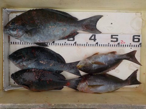 | 落ち | グレ 32~43cm 3枚 イサギ 31~33cm 2枚 |